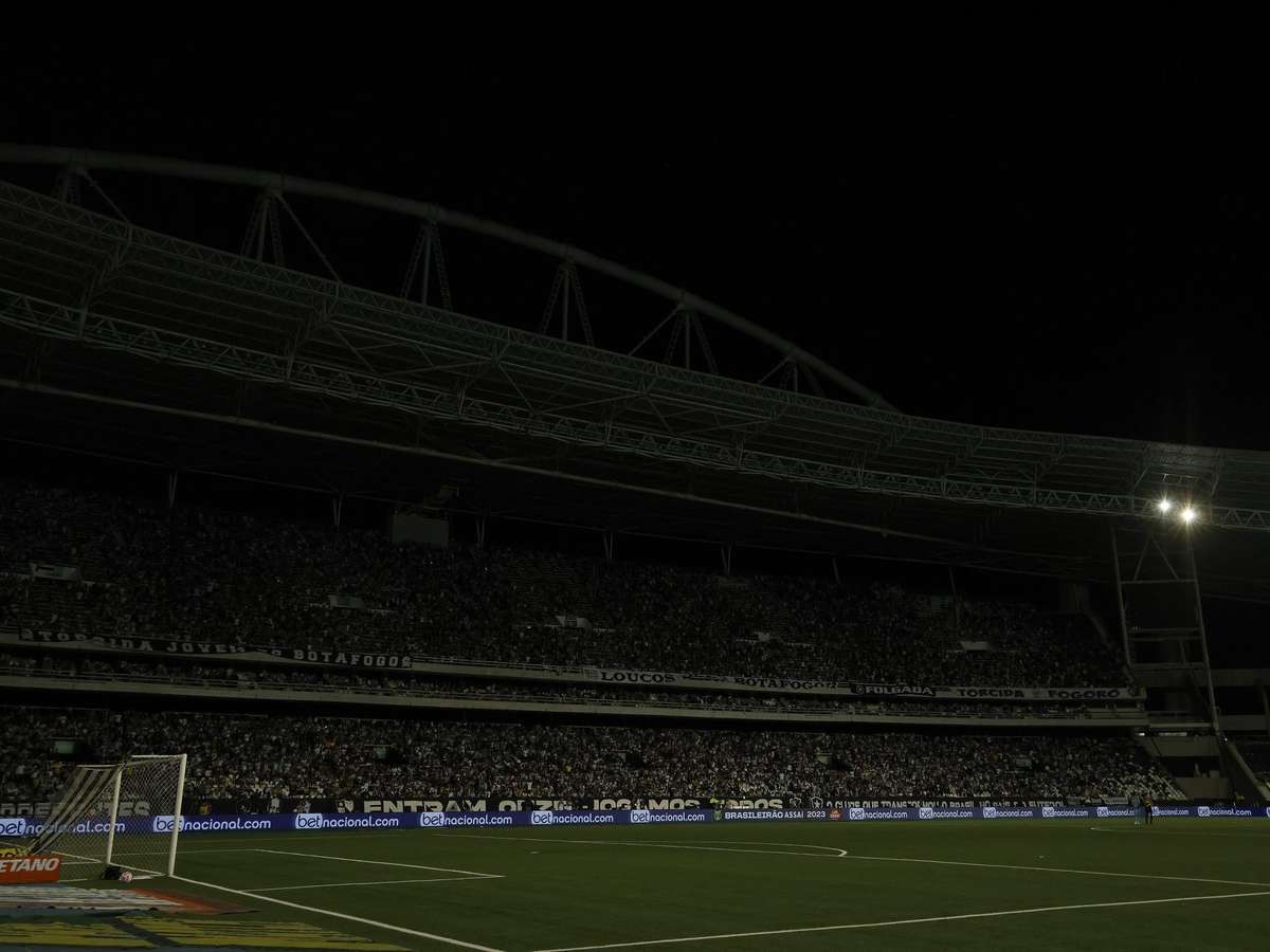 Após quedas de luz no primeiro tempo, o jogo entre Botafogo e Athletico-PR foi interrompido por 30 minutos.