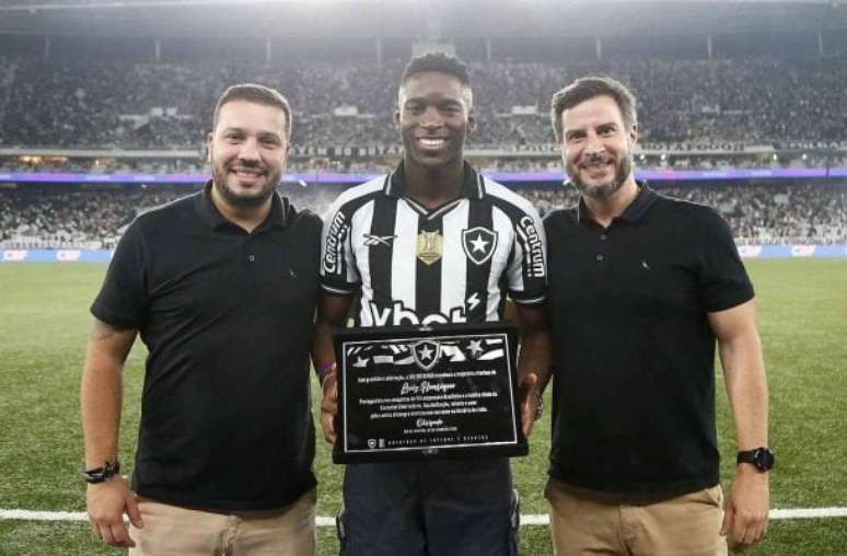"Com gratidão e admiração, a SAF Botafogo reconhece a trajetória vitoriosa de Luiz Henrique, protagonista nas conquistas do tricampeonato brasileiro e o inédito título da Libertadores. Sua dedicação, talento e amor pela camisa alvinegra eternizaram seu nome na história do clube. Obrigado", diz a mensagem na placa.