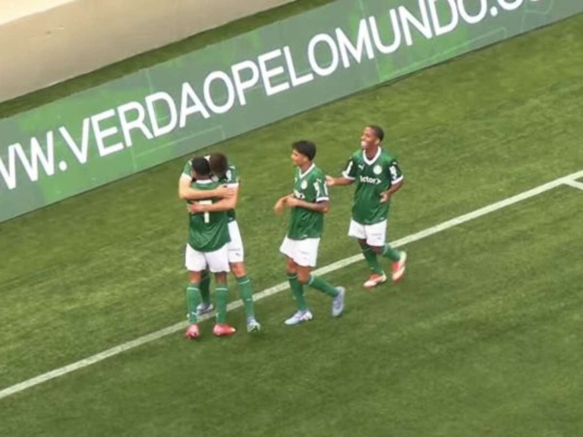 Senhor do clássico, o Palmeiras já estava na frente logo depois do pontapé inicial. Afinal, Com um minuto, Sorriso recebeu de Riquelme e saiu feliz da vida ao superar o goleiro adversário. Aos quatro, o jogador sorridente serviu Heittor, que ampliou o score para o Verde. O time da casa estava com a faca nos dentes. Benedetti, então, centrou para Riquelme meter o terceiro, aos 14.