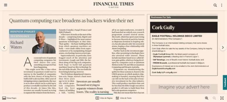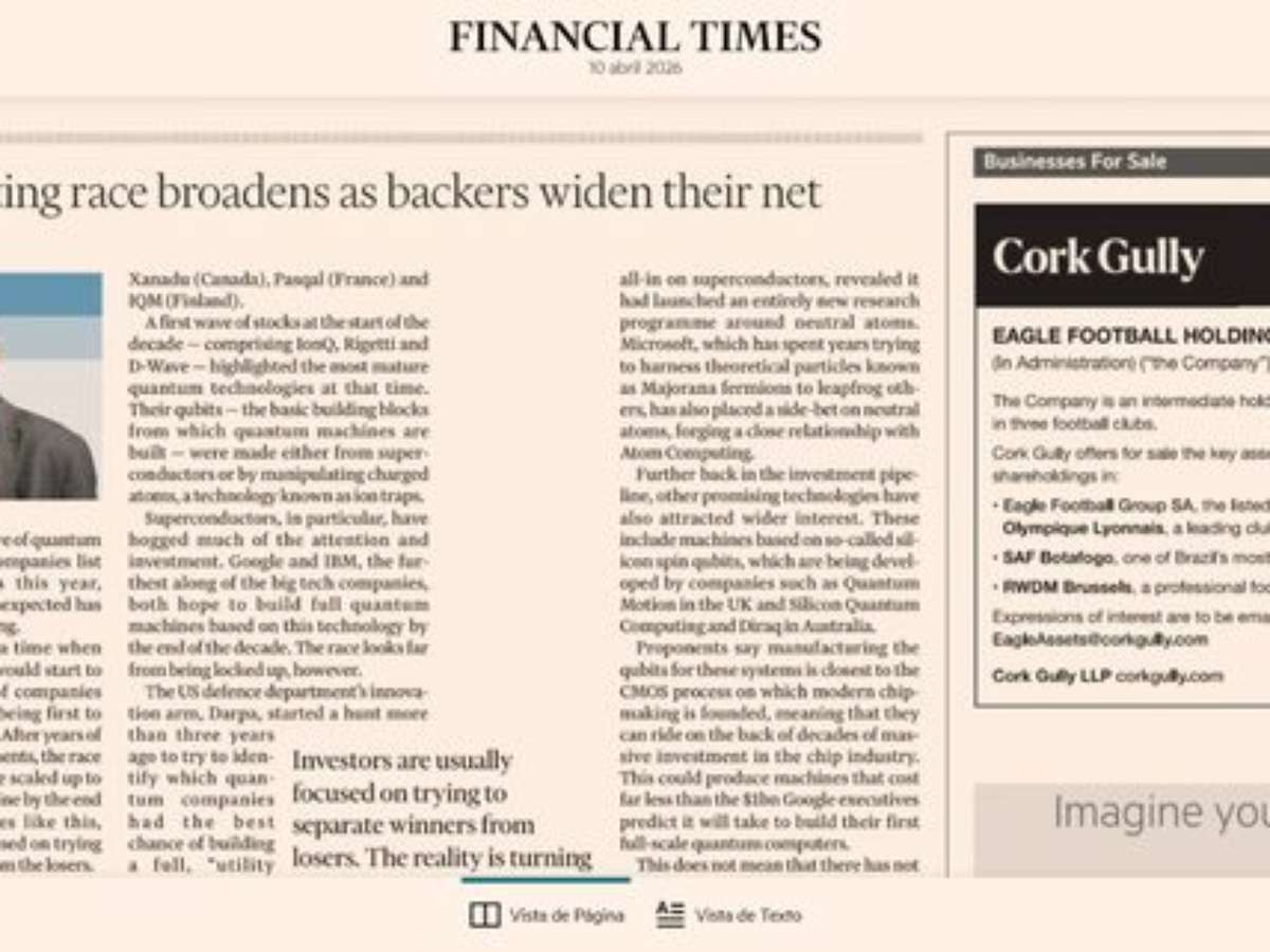 A publicação foi feita pela Cork Gully, consultoria britânica que atua como administradora judicial da Eagle Football Holdings, grupo ligado ao empresário John Textor. No comunicado, a empresa informa que colocou à venda seus principais ativos, incluindo participações majoritárias em três clubes: o Botafogo, o Lyon, da França, e o RWDM Brussels, da Bélgica.