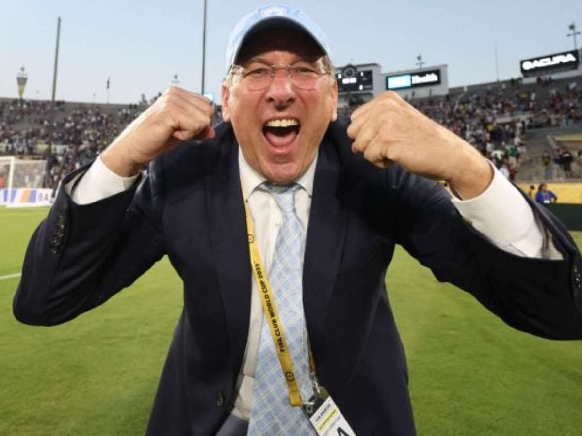 Eufórico com o triunfo sobre o PSG, empresário se declara ao Brasil, corre pelo gramado do Rose Bowl e simula engraxar chuteira de atacante