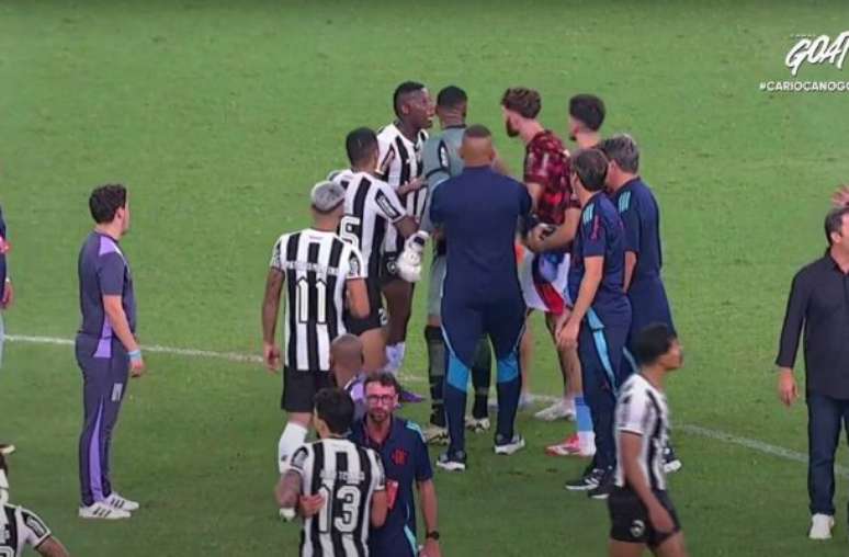Já Marlon Freitas, capitão do Alvinegro, entra em discussão com Wesley e Léo Pereira: 'ele não pode dar soco na covardia'. Referindo-se ao ato de Cleiton contra Barboza, que perdeu um dente na confusão.