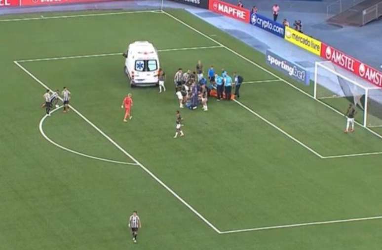 Zagueiro do Carabobo sai de ambulância após choque com Mastriani, do Botafogo