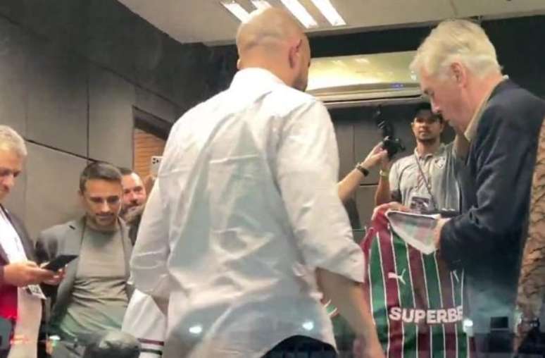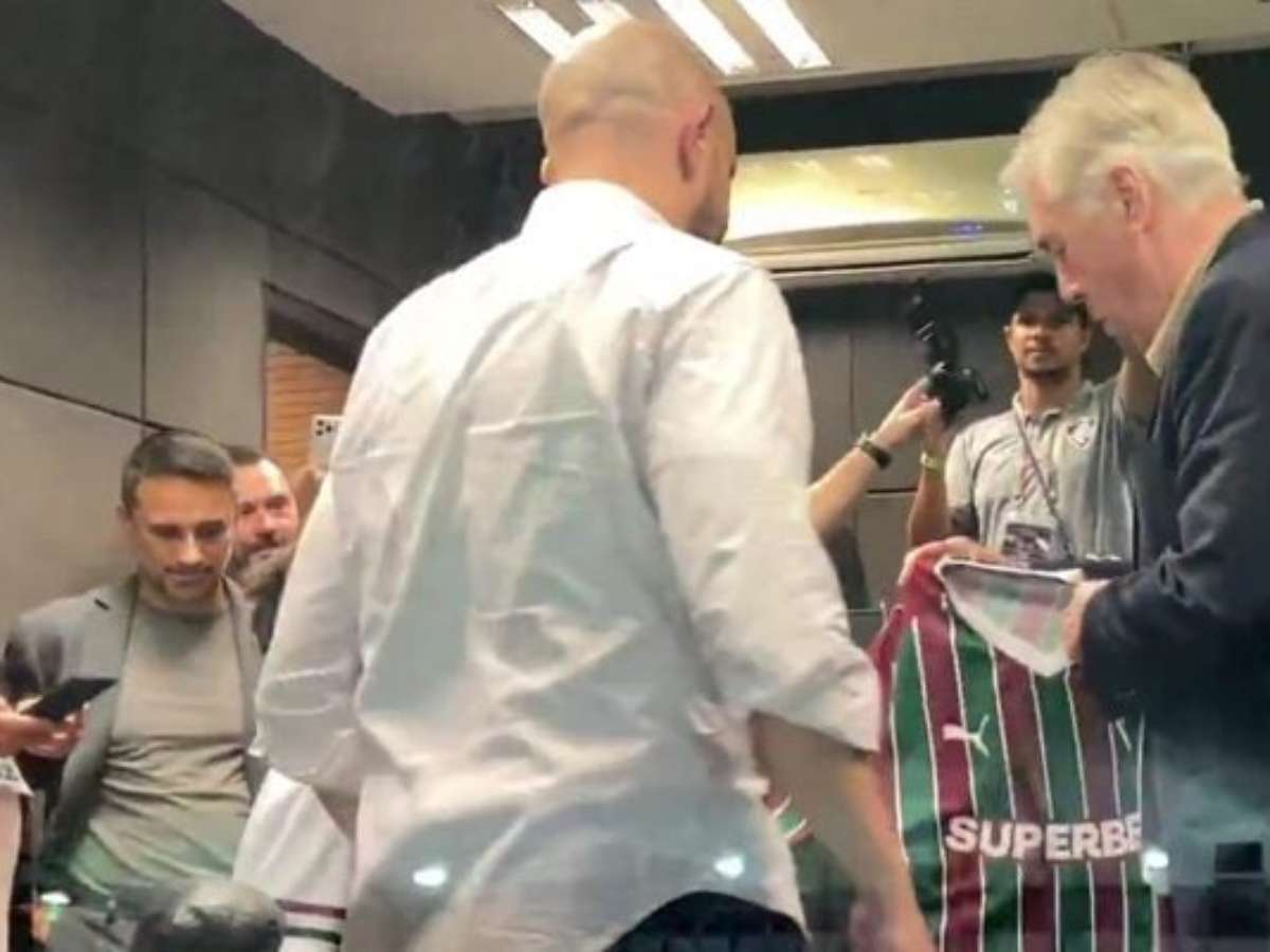 Ancelotti vai ao Maracanã e recebe a camisa do Fluminense