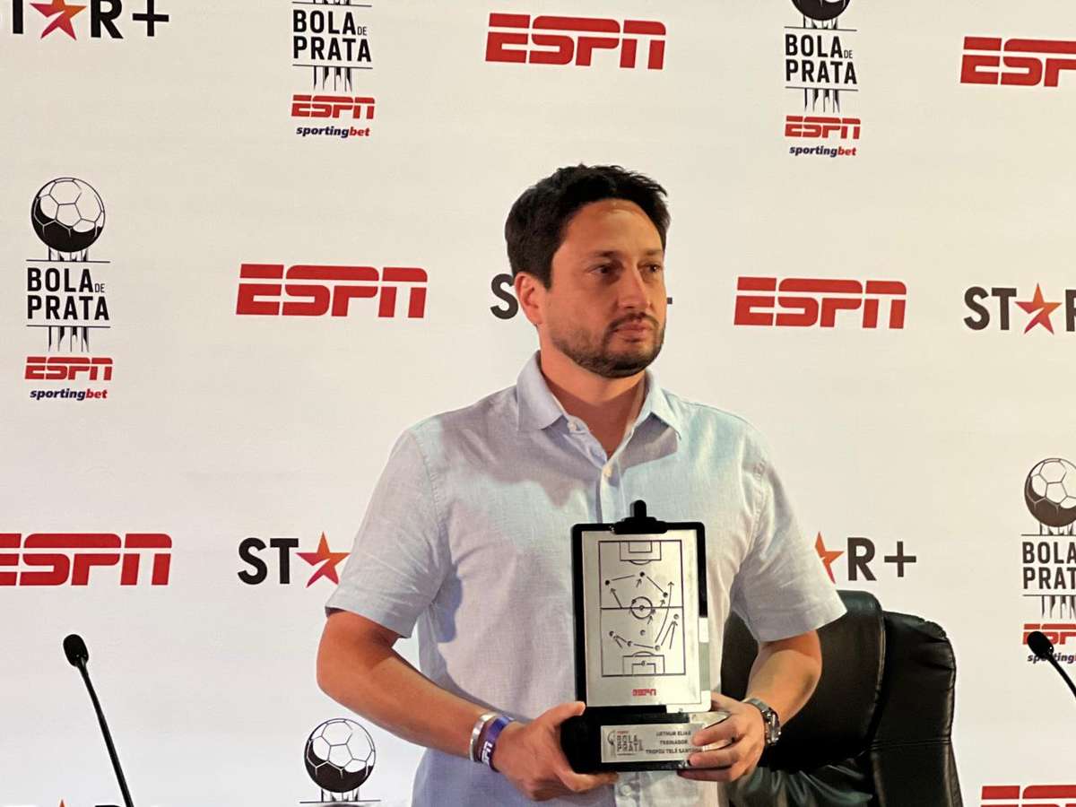Arthur Elias foi eleito o melhor treinador de futebol feminino e levou o Prêmio Telê Santana na cerimônia da Bola de Prata, em São Paulo. O encontro é promovido pela ESPN e a plataforma Star+. Em seu discurso, nesta quinta-feira, 7, ele falou sobre a expectativa com a Seleção Brasileira. O treinador assumiu a equipe após a Copa do Mundo Feminina.