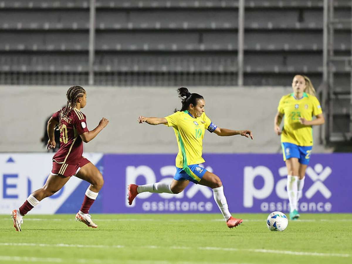 Na estreia, a Seleção Brasileira derrotou a Venezuela por 2 a 0. Os gols foram de Amanda Gutierres, na primeira etapa, e Duda Sampaio, no fim da partida. como o Paraguai fez 4 a 0 na Bolívia, o Brasil ocupa a segunda colocação no Grupo B.