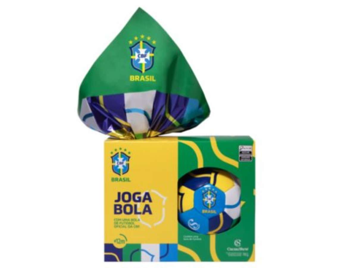 Produzido em chocolate ao leite e composto por drageados crocantes como recheio, o item pesa 170 gramas. A empresa o batizou de Ovo de Páscoa ao Leite Bola CBF Chocoesportes, e o kit ainda acompanha uma minibola personalizada nas cores tradicionais da Seleção.