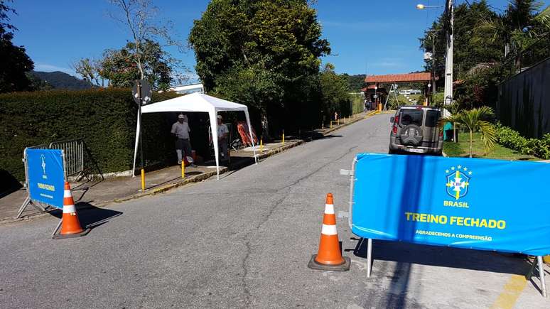 A fim de evitar aglomerações de torcedores na Granja Comary, a CBF colocou duas faixas à porta do condomínio que dá acesso à concentração da Seleção Brasileira, em Teresópolis, na região serrana do Rio, com a seguinte informação: 'Treino fechado'.