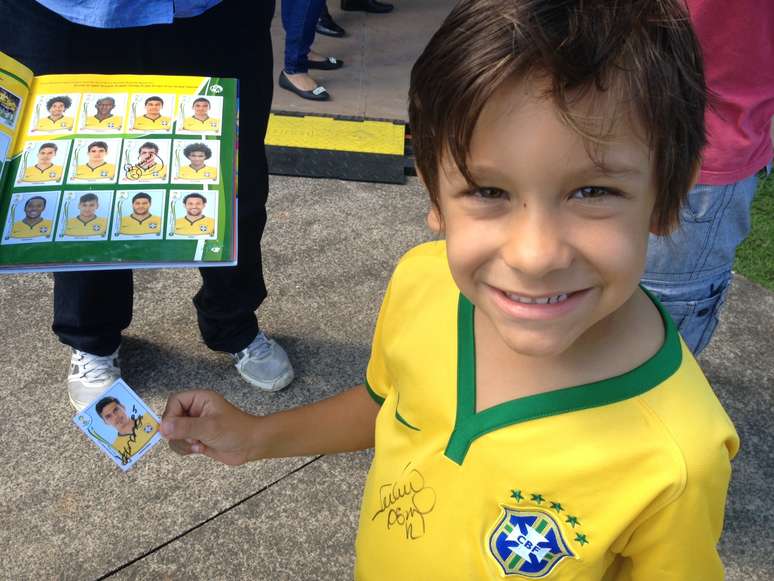 Desta maneira ele conseguiu autógrafos de Hernanes, Bernard, entre outros. Como já tem a página da Seleção completa, ele entregava figurinhas repetidas e colava por cima das já existentes as novas autografadas. No final ele conseguiu a que mais queria, a de Oscar.