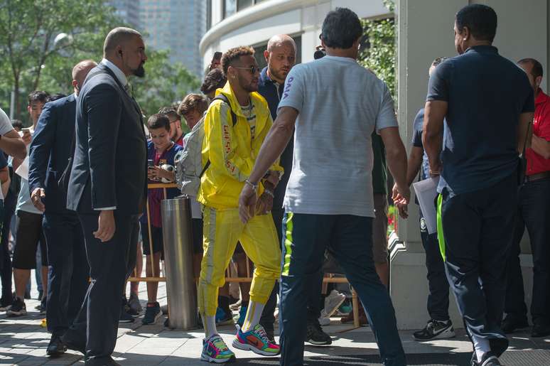 A apresentação de Neymar à Seleção Brasileira nesta segunda-feira foi realmente digna de atrair as atenções dos presentes no hotel em Nova Jersey, nos Estados Unidos. Por volta do meio-dia no horário de Brasília (11h local), o craque do Paris Saint-Germain chegou com um traje um tanto quanto chamativo e distribuiu autógrafos antes de ficar à disposição da comissão técnica para os dois primeiros amistosos após a participação na Copa do Mundo da Rússia.