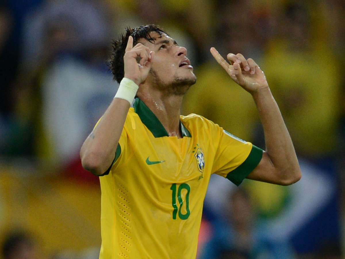 Neymar ajoelha após o segundo gol brasileiro na partida