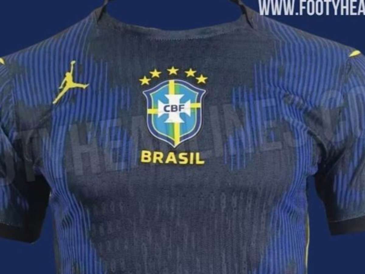 O site especializado em uniformes de futebol pelo mundo, Footy Headlines, vazou nesta quinta-feira (6/11) aquela que pode ser a nova camisa II da Seleção Brasileira para a Copa do Mundo de 2026. O modelo segue a tradição do azul, mas com uma pegada moderna. O escudo da CBF surge centralizado, enquanto à direita do peito está a logo da Air Jordan, marca parceira da Nike que deve assinar o design do uniforme.