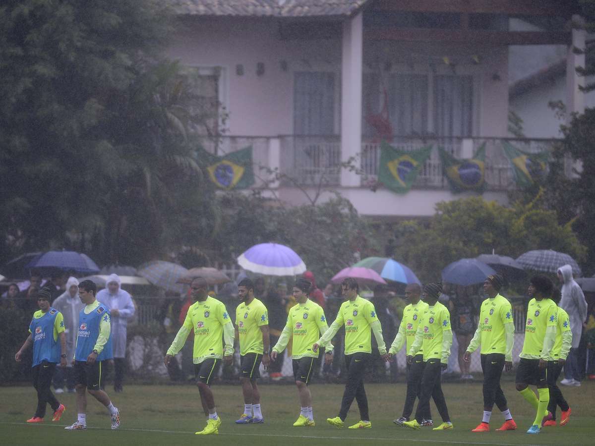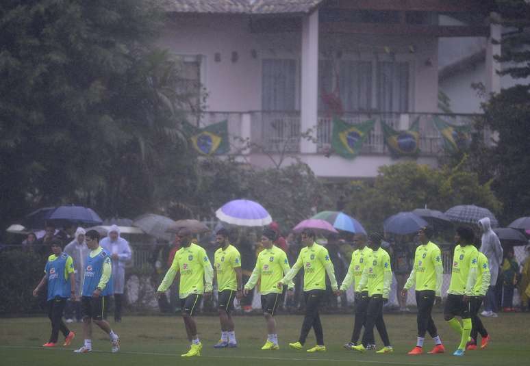 Seleção Brasileira treina com chuva torrencial e frio no RJ
