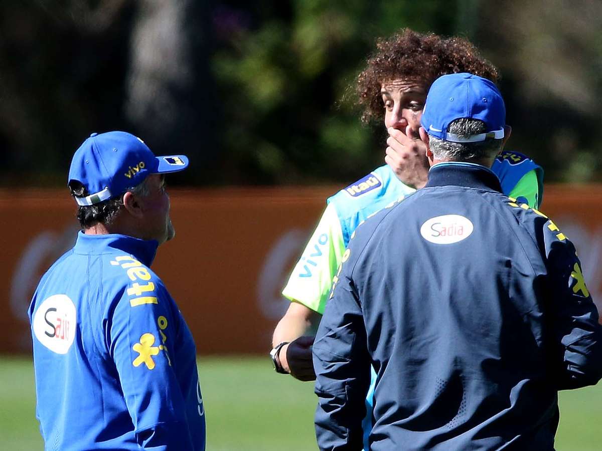 O zagueiro David Luiz chegou ficar fora de outra atividade, mas desta vez não teve descanso. Inclusive na hora da entrevista, quando sentou ao lado do meio-campista Willian na bancada e conversou por mais de 40 minutos com a imprensa.