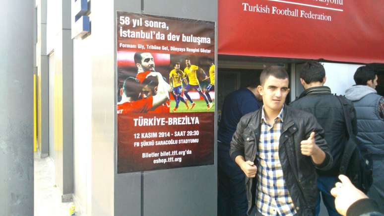 Em Istambul, cartaz que promove amistoso destaca Arda Turan (Foto: Leandro Miranda/Terra)