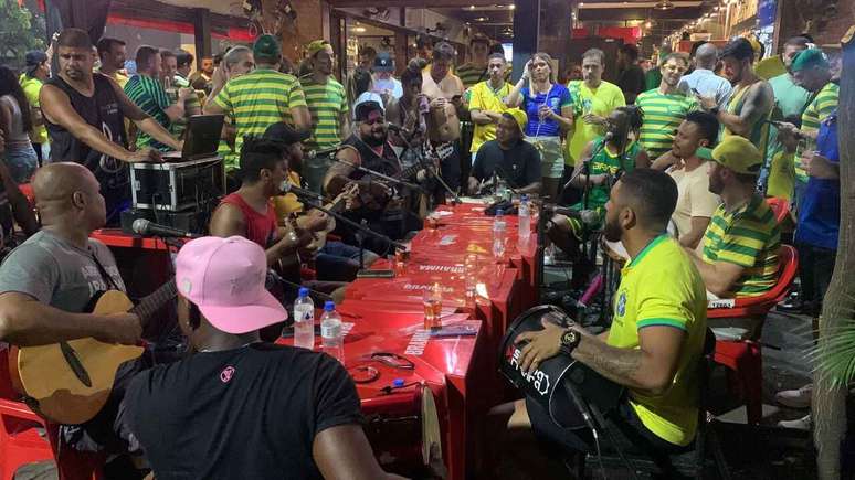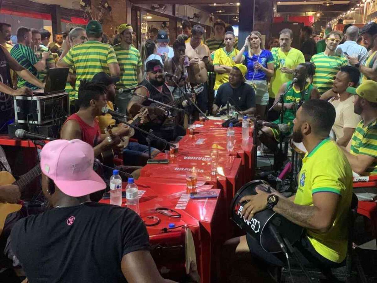 Vascaínos fazem esquenta para jogo do Brasil em reduto de flamenguistas