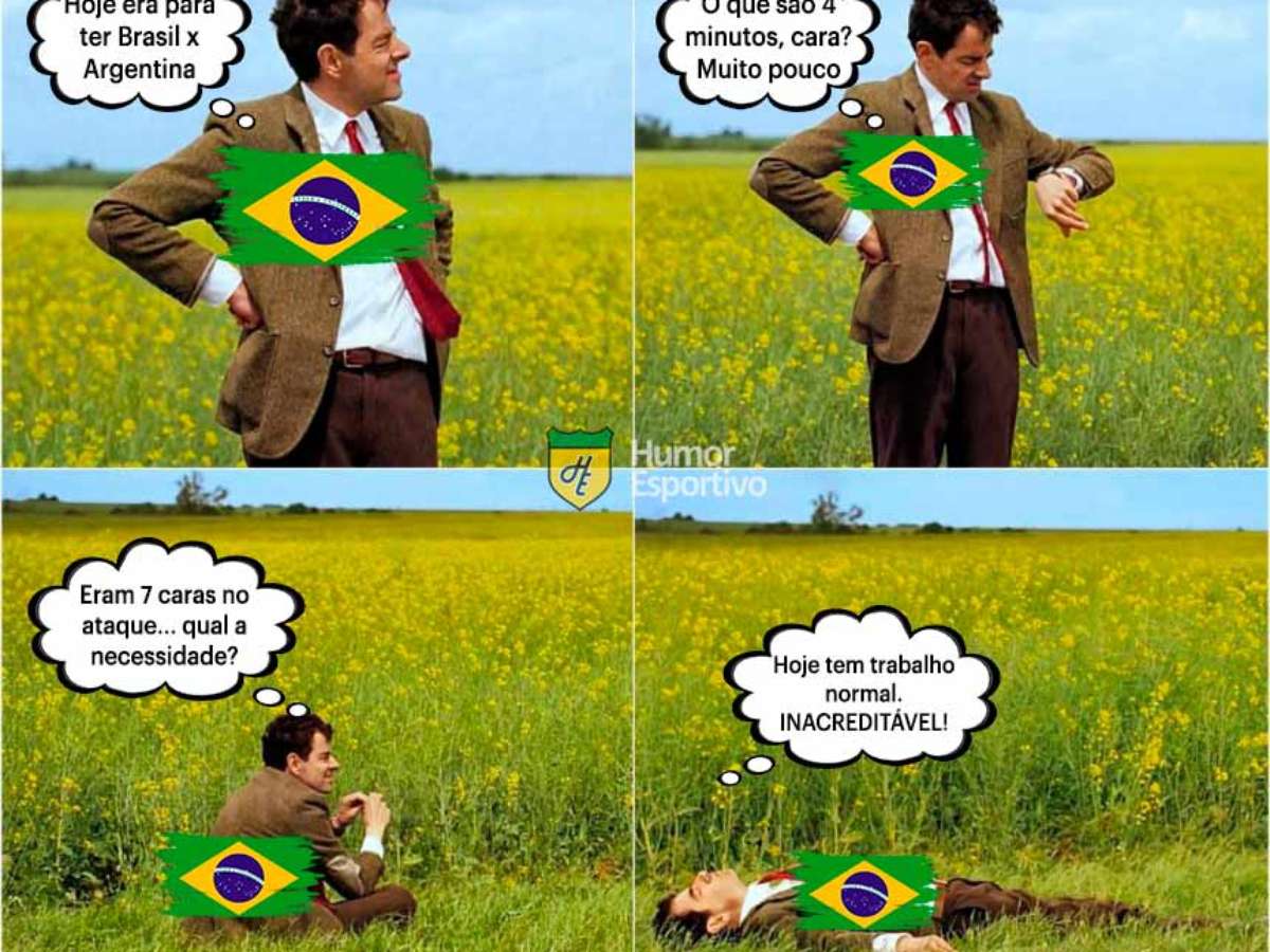 No dia em que a Argentina enfrenta a Croácia pelas semifinais da Copa do Mundo, muitos torcedores estão manifestando nas redes sociais as suas frustrações por não ter o Brasil no confronto. A maioria das montagens brincam com o gol sofrido a 4 minutos do fim da prorrogação contra os croatas, além de lamentarem o expediente normal nesta terça-feira. Veja! (Por Humor Esportivo)