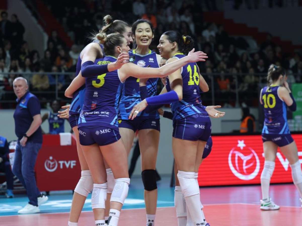 O roteiro seguiu o mesmo no terceiro set e o time de Istambul largou na frente do rival. Porém, quando parecia que o Eczacıbaşı ia conseguir a virada, as italianas reagiram na reta final e se saíram vitoriosas pelo placar de 26 a 24. Logo depois, o clube turco passou a dominar o jogo e levou o duelo para o tie-break com uma vitória tranquila por 25 a 17. Já na etapa decisiva, 15 a 10 para o Eczacıbaşı e vantagem imposta nas quartas da Champions League.