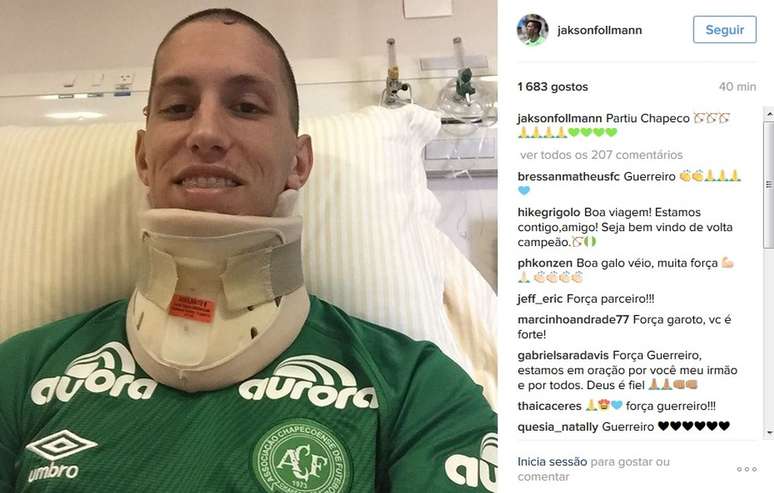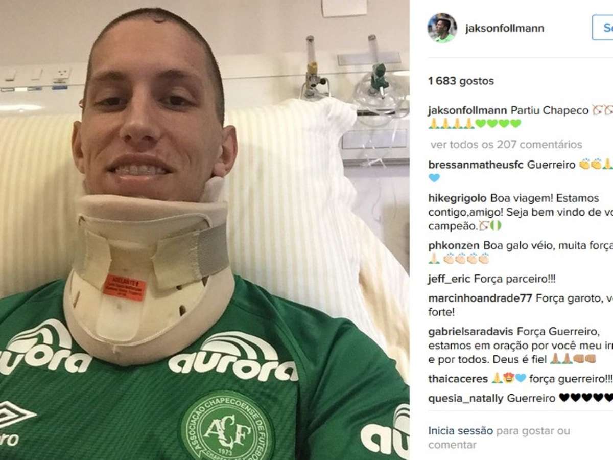 O goleiro da Chapecoense, Jackson Follmann, é um dos seis sobreviventes do acidente em que morreram 71 pessoas, entre atletas, membros do clube, tripulantes e jornalistas. Entre os seis sobreviventes, quatro são brasileiros e dois bolivianos.
