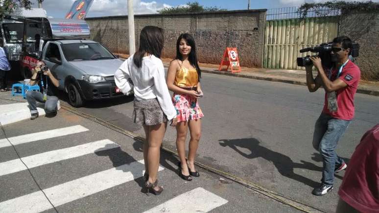 Elas chamaram a atenção com roupas curtas, decotes e sorrisos largos – algo que despertou a atenção da imprensa estrangeira do lado de fora da Toca II. As dançarinas falaram com os jornalistas que a ideia da “visita” ao centro de treinamento foi do patrão delas, em busca de divulgar o local.