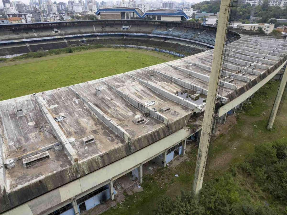 A Justiça de São Paulo determinou a penhora da Arena do Grêmio a pedido dos bancos Santander, Banrisul e Banco do Brasil, financiadores do estádio tricolor. O motivo seria uma dívida do clube na casa dos R$ 216 milhões. No entanto, enquanto o clube gaúcho sofre com a pendência financeira, o seu antigo estádio, o Olímpico, segue de pé. Veja a seguir fotos da situação atual do antigo estádio gremista.