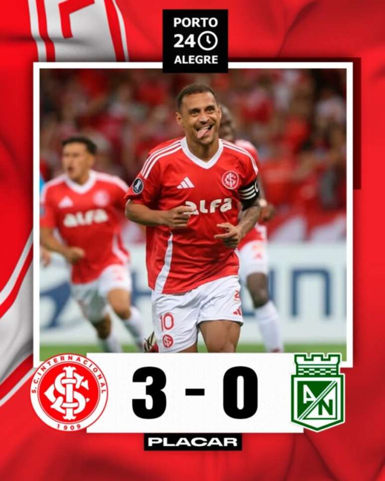 Em noite de Libertadores marcada por tensão e intensidade, o Inter venceu o Atlético Nacional por 3 a 0, nesta quinta-feira (10), no Beira-Rio, e assumiu a liderança do Grupo F. O grande destaque foi Alan Patrick, que marcou os três gols da partida — dois de pênalti — e garantiu a invencibilidade colorada no ano, agora com 16 jogos sem derrota. Apesar do placar elástico, a vitória foi suada diante de um adversário agressivo, que deu trabalho até sofrer uma expulsão na segunda etapa.