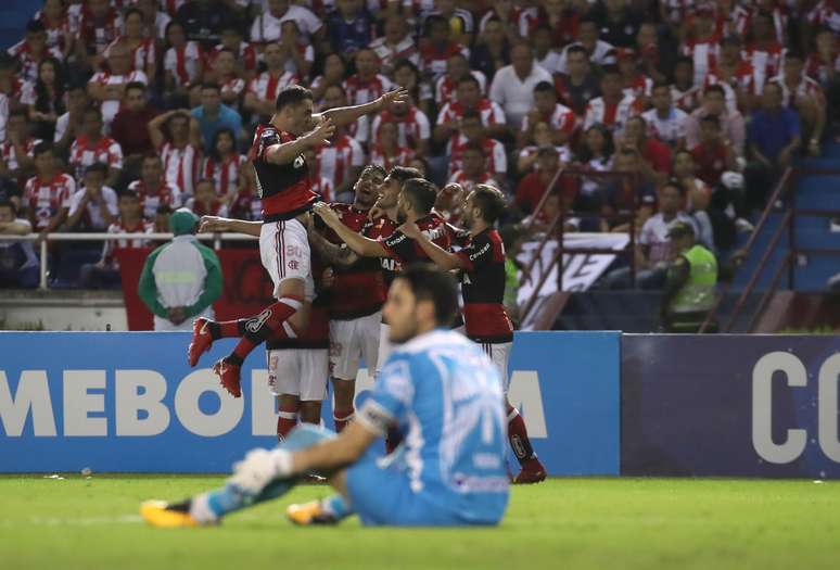 O revés fez com que o Junior se lançar ao ataque. Os donos da casa quase empataram aos oito minutos. No entanto, Ovelar finalizou pela linha de fundo. No entanto, os colombianos passaram a ficar nervosos e aumentaram o número de erros de passes. Com isso, o Flamengo conseguiu equilibrar o confronto e ter mais posse de bola.