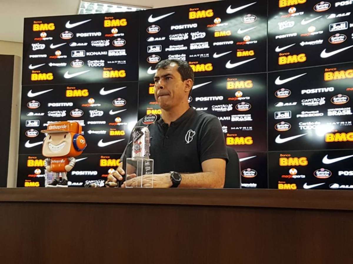 Fábio Carille voltou à sala de imprensa do Corinthians após mais de quatro meses para conceder uma entrevista coletiva que durou cerca de 25 minutos. Cada repórter teve direito a uma pergunta, mas o tema, obviamente, não foi tão variado. O técnico passou a maior parte do tempo tendo de falar sobre a pressão no cargo e o motivo do time não reagir em campo.