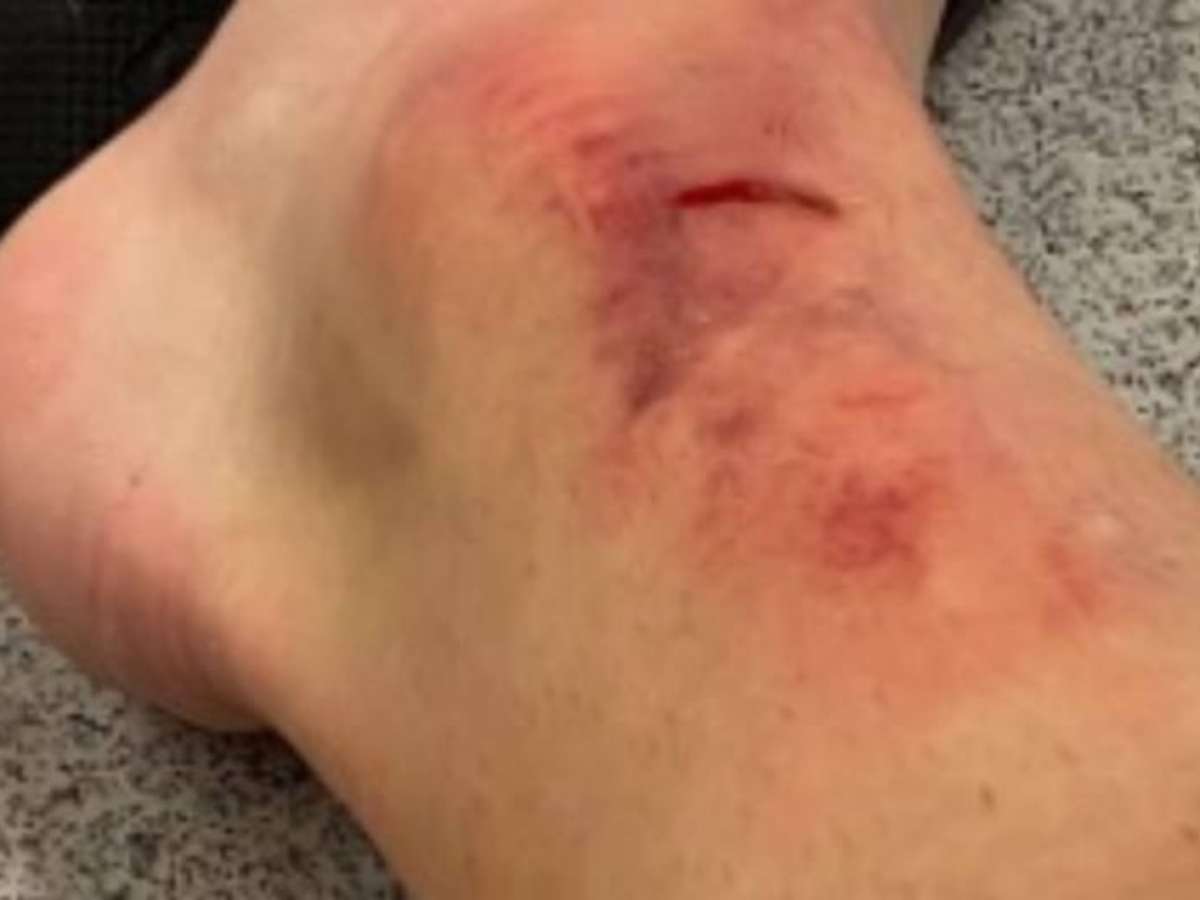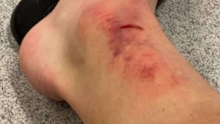 Carlos Augusto posta foto do corte e hematomas no tornozelo