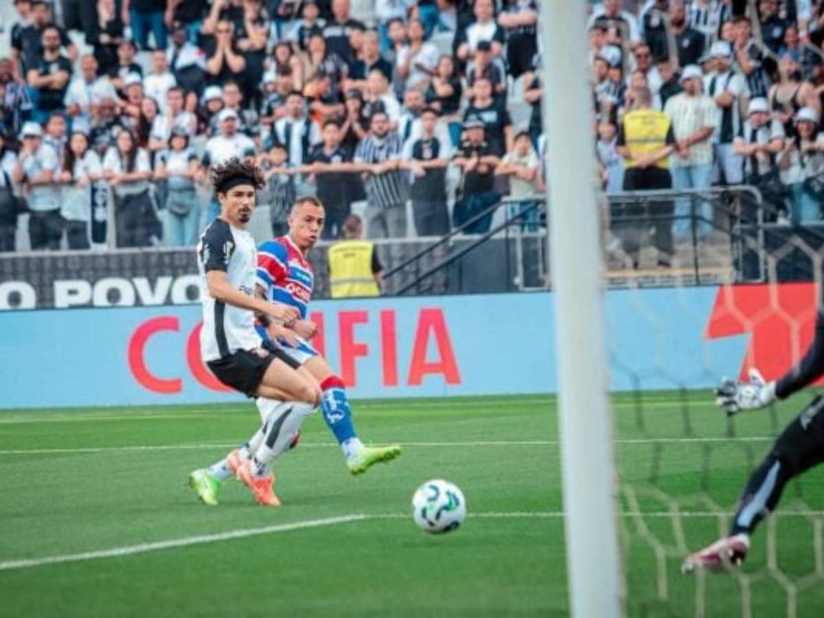 O Corinthians, com time reserva pensando no Dérbi contra o Palmeiras, no meio de semana, pela Copa do Brasil, jogou melhor e teve as melhores oportunidades da partida. Contudo, quem abriu o placar foi o Fortaleza. Logo aos cinco minutos, Breno Lopes aproveitou belíssimo lançamento de Matheus Pereira para bater cruzado e passar por Hugo Souza, abrindo o placar na Arena. Após o gol sofrido, os paulistas se lançaram para o ataque, principalmente com Angileri. O lateral-esquerdo teve duas boas chances. Na primeira parou em Vinícius Silvestre, enquanto na segunda oportunidade, carimbou a trave. Depois, Romero teve grande chance dentro da peque na área, mas isolou. O Leão do Pici, por sua vez, também chegou próximo do segundo gol, após André Ramalho quase marcar contra, acertando a trave. Mesmo assim, a equipe nordestina foi para o intervalo com a vantagem.