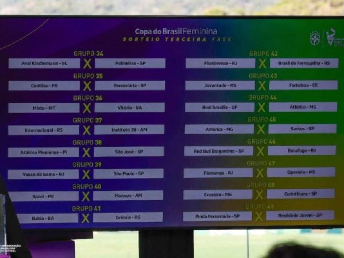 Nesta terça-feira (8), a CBF realizou o sorteio da terceira fase da Copa do Brasil Feminina. Ao todo, 32 times seguem na briga pelo título da competição, sendo divididos em dois grupos com 16 equipes cada. Os confrontos serão em jogo único e acontecerão a partir de 6 de agosto.