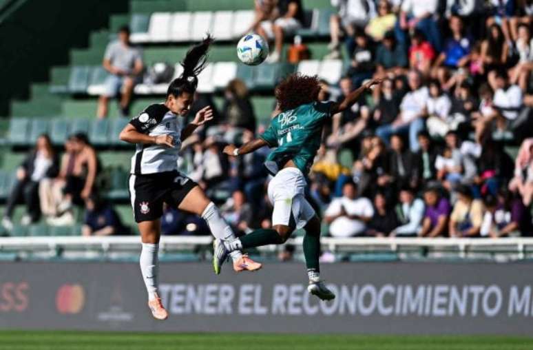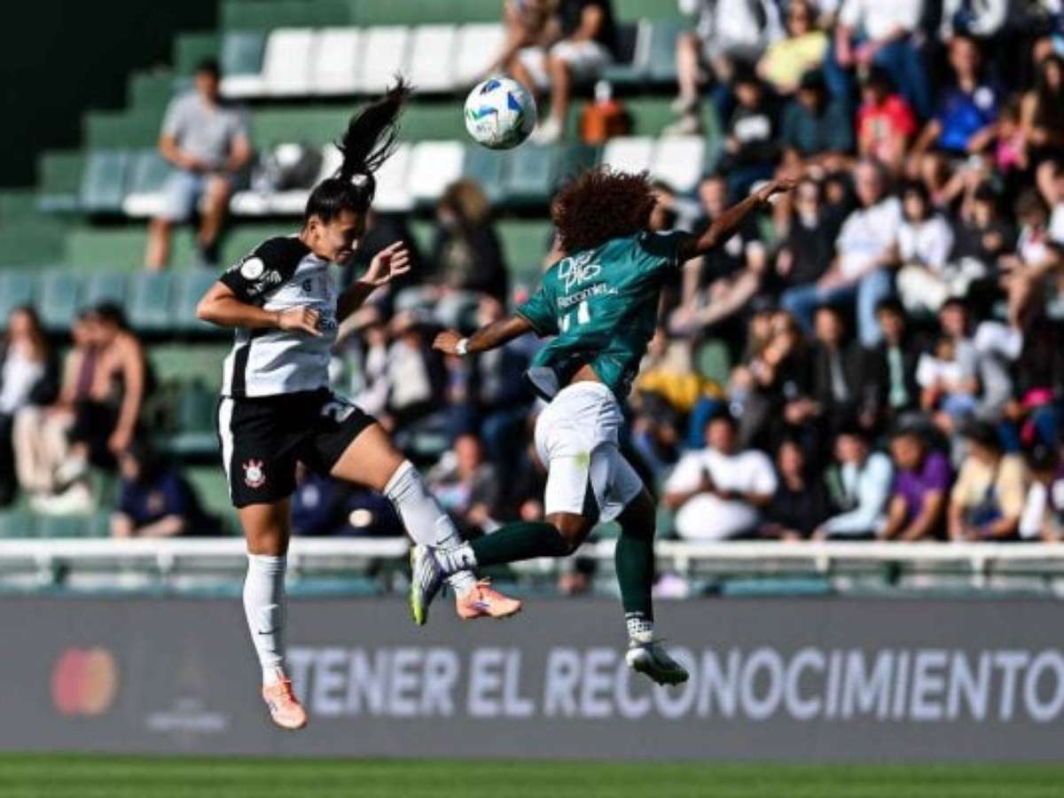 O primeiro tempo da final foi marcado por equilíbrio e muita cautela entre Corinthians e Deportivo Cali. As equipes se estudaram bastante, com poucas chances claras e muitas disputas truncadas no meio-campo. A primeira grande oportunidade veio aos 13 minutos, quando Érika subiu bem de cabeça e obrigou a goleira Agudelo a fazer boa defesa. Aos 21, Duda Sampaio arriscou de longe e novamente a arqueira colombiana apareceu com segurança. Nos minutos finais da etapa inicial, o Corinthians chegou a abrir o placar. Após confusão na área, Érika cabeceou para o fundo das redes. O gol foi inicialmente validado, mas a árbitra foi chamada pelo VAR e anulou o lance por interferência de Vic Albuquerque, que estava em posição de impedimento.