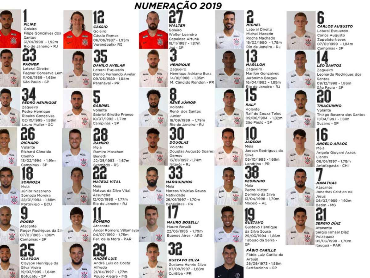 O Corinthians divulgou neste sábado a numeração dos jogadores para o Campeonato Paulista. O destaque ficou pela ausência da camisa 4, que pode ser do zagueiro Manoel, próximo de ser contratado por empréstimo junto ao Cruzeiro.