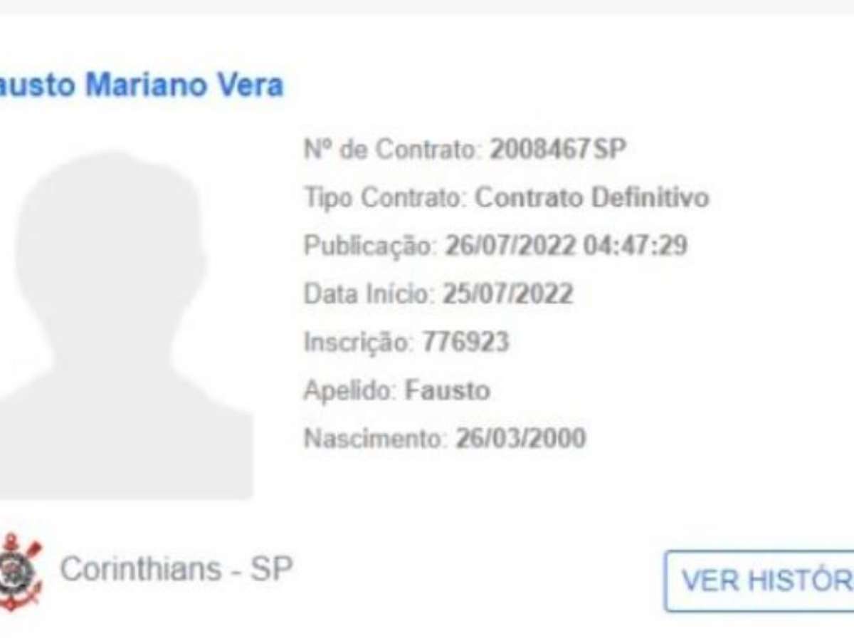O Corinthians anunciou oficialmente a contratação de Fausto Vera, do Argentinos Juniors, na tarde desta terça-feira, 26. O volante estava no Brasil desde domingo para acertar os últimos detalhes. Seu contrato vai até junho de 2026. Na última segunda, 25, o clube argentino já havia confirmado a informação.