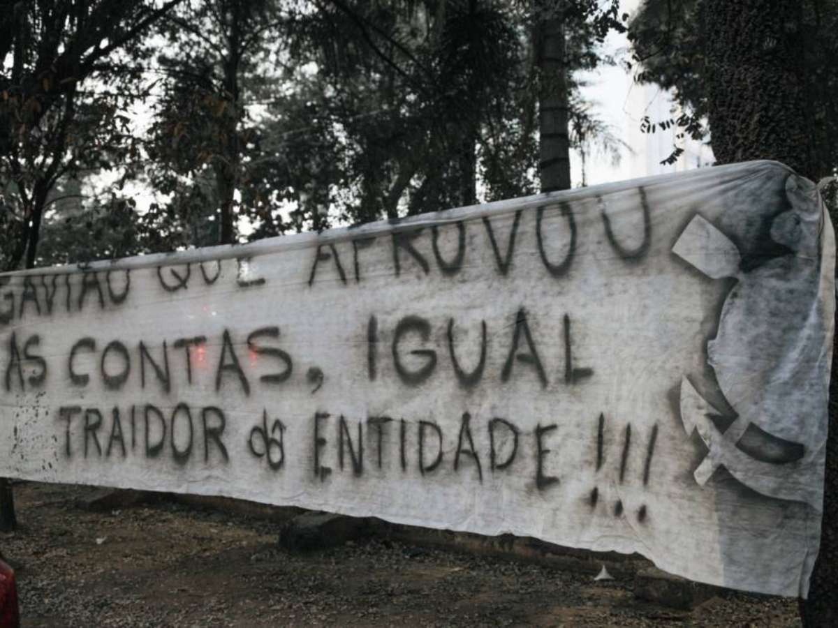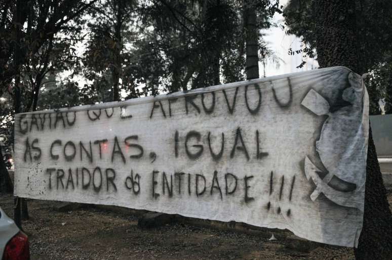 Chapa Renovação e Transparência, o presidente Duílio Monteiro Alves e o ex-presidente Andrés Sanchez foram os maiores alvos da manifestação