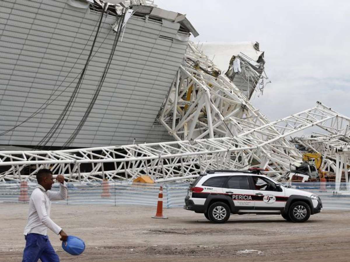 Parte da estrutura da Arena Corinthians desabou na manhã desta quarta-feira