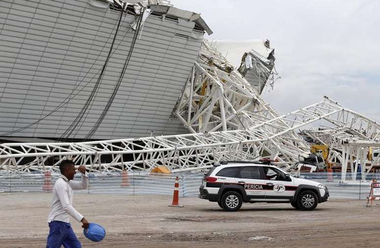 Parte da estrutura da Arena Corinthians desabou na manhã desta quarta-feira, após a queda de uma grua sobre a cobertura do estádio, sede paulista da Copa do Mundo de 2014