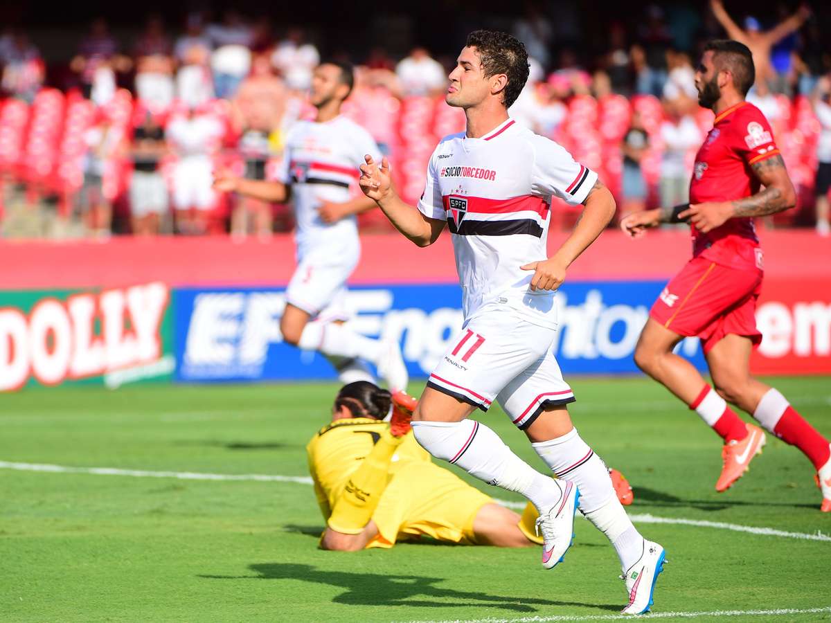 Até os 33min, quando o São Paulo enfim abriu o placar, apenas o camisa 11 parecia “ligado” em campo. Ele deu lançamento longo a Thiago Mendes, emendou chute de primeira por cima de meta de Felipe Alves e até se aproximou dos volantes para ajudar na armação. Só depois, com a evolução das atuações de Michel Bastos e Luís Fabiano, é que foi recompensado: anotou dois gols, isolou-se na artilharia do Campeonato Paulista com seis marcados e ganhou bastante confiança para a próxima quarta-feira.