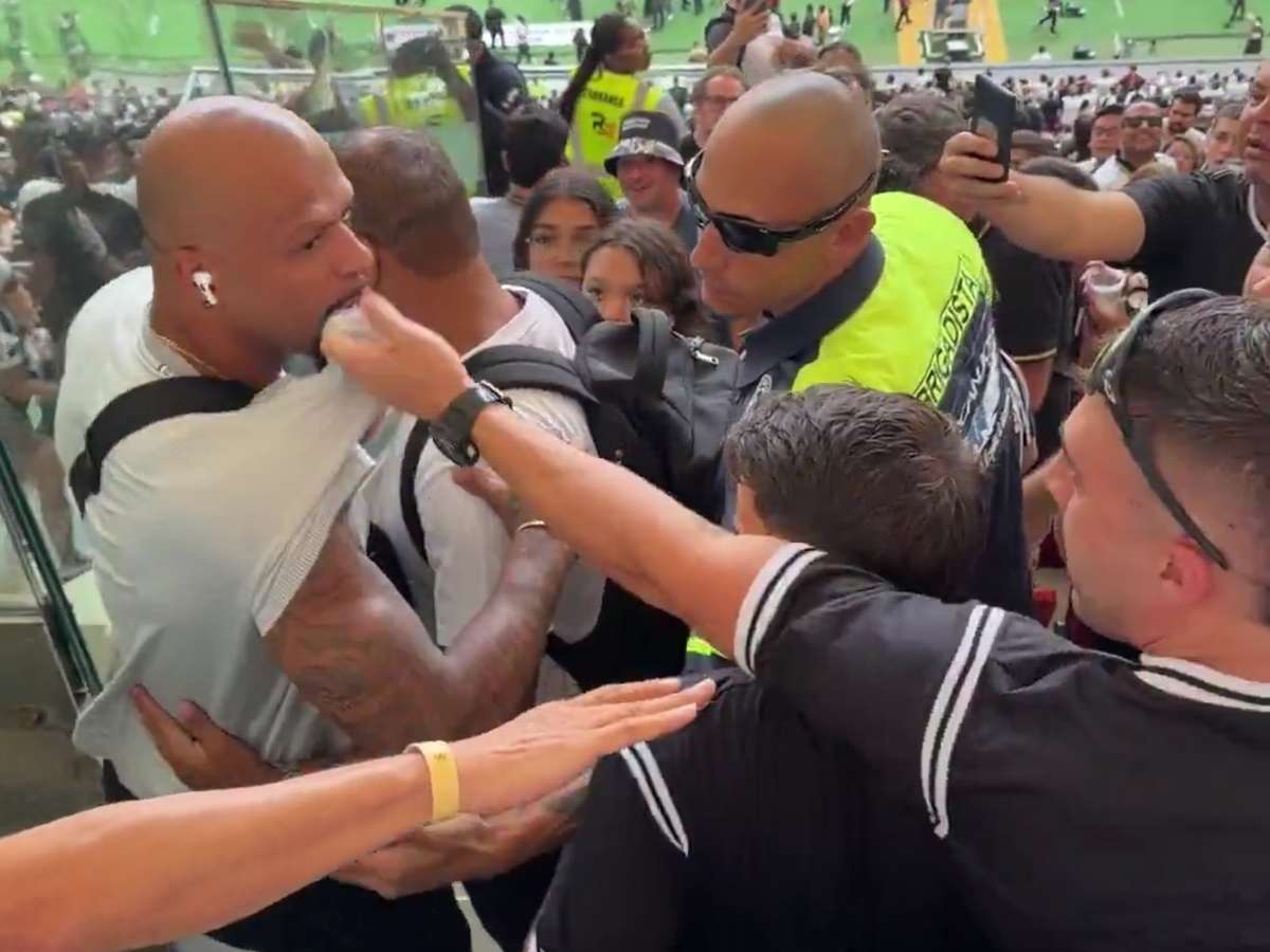 Em imagens que circulam nas redes sociais, é possível ver o momento em que o ex-volante se dirigia ao setor destinado à imprensa, acompanhado do jornalista André Rizek, quando inicia uma discussão com um torcedor do clube paulista.