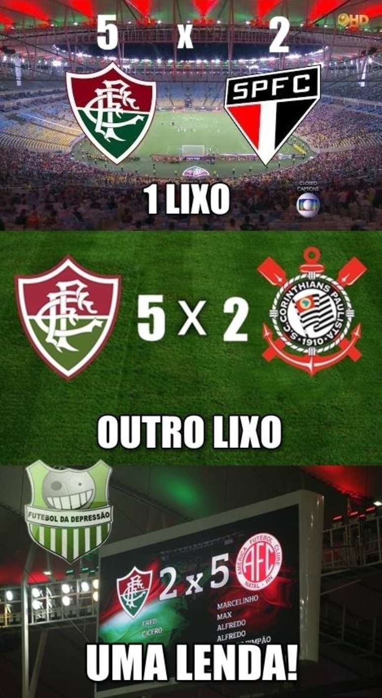 O Corinthians se classificou para a Libertadores na rodada, mas a goleada sofrida para o Fluminense por 5 a 2 não foi perdoada pelos rivais. Na internet, as piadas foram desde Fred ensinando o "neném" Guerrero a fazer gol, até torcedor corintiano abrindo a geladeira e encontrando mais um gol do time tricolor.