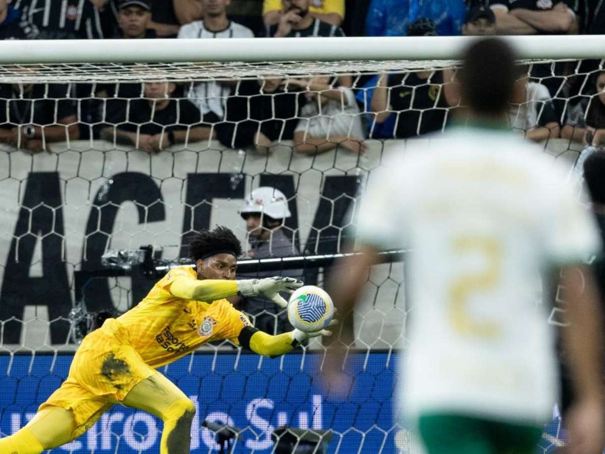 Hugo Souza defende pênalti de Estêvão nos acréscimo e garante empate do Corinthians em 1 a 1 contra o Palmeiras.
