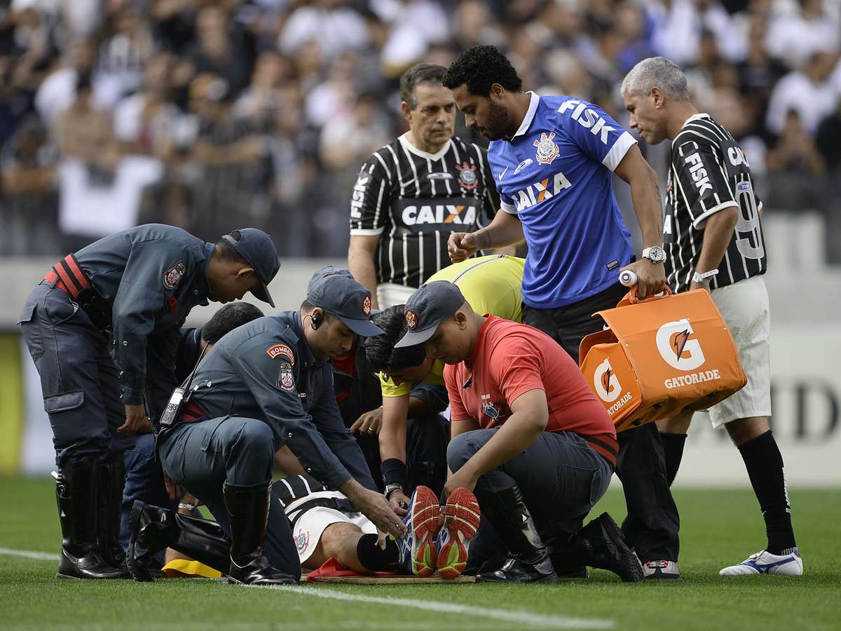 O ex-jogador foi a nota triste da festa de abertura da Arena Corinthians, no último sábado. Ele caiu de mau jeito na primeira das seis partidas disputadas entre ídolos do clube e saiu de maca.