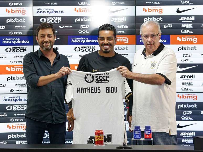 O lateral esquerdo Matheus Bidu foi oficialmente apresentado no Corinthians na manhã desta segunda-feira, no CT Dr. Joaquim Grava, na presença da família. Sim, o apelido vem do famoso cachorrinho de Mauricio de Sousa na "Turma da Mônica". Porém, o primeiro "Bidu" é de Antonio, seu pai, também "bom de bola".