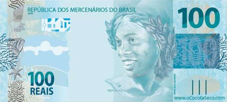 Como não poderia deixar de ser, a nova negativa de Ronaldinho ao Palmeiras virou piada na web. Os internautas não deixaram o fato passar batido e deram bastante risada com a camisa “100 Ronaldinho”, por exemplo. Além disto, colocaram o craque no Sport, como aconteceu com o meia Diego Souza, e o estamparam em uma nota de 100 reais da “República dos Mercenários do Brasil”. Veja abaixo:
