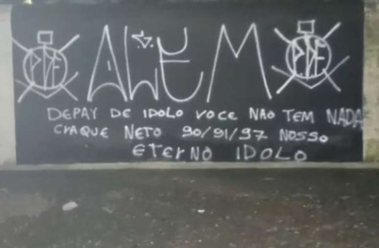 O jogador holandês, que chegou ao clube cercado de expectativa, tem enfrentado críticas crescentes da torcida. Aliás, uma das frases nos muros dizia: "Depay de ídolo não tem nada", em alusão a recentes comentários do ex-jogador e ídolo corintiano Neto, que tem questionado o comportamento e o rendimento do atleta.