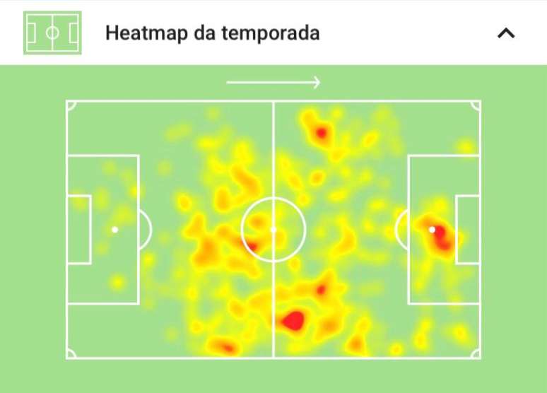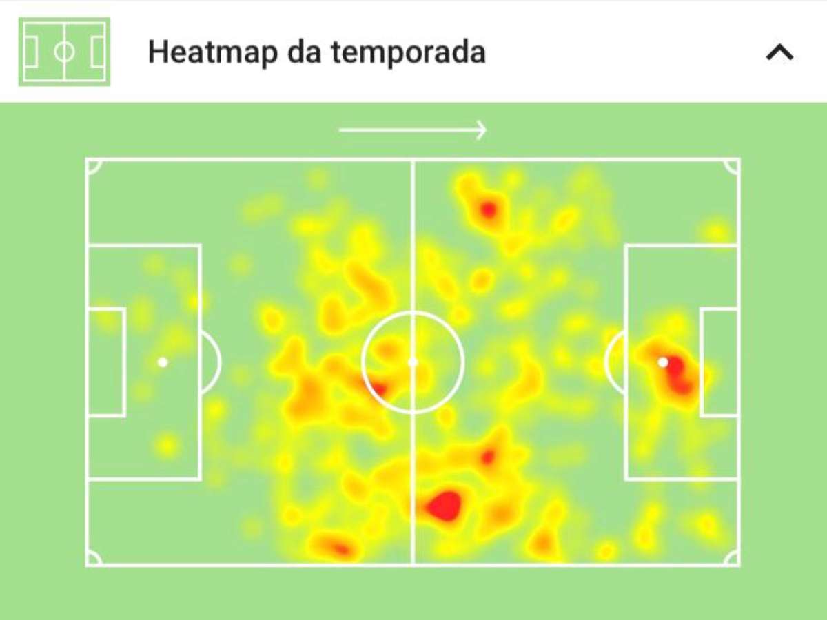 Mapa de calor de Paulinho no Corinthians neste início de temporada (Foto: Reprodução/SofaScore)