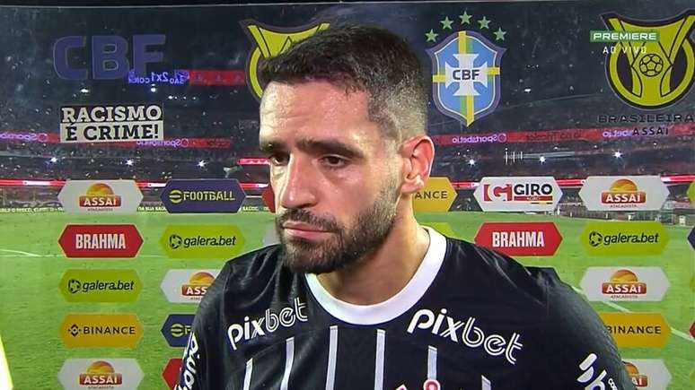 "Foi falta no segundo gol do São Paulo, saiu acho que saiu a chuteira do Felipe. O segundo tempo foi um jogo mais picotado, o jogo foi parado e a gente chamou o Flávio várias vezes para falar que estava demorando muito para sair uma jogada. Eu entendo que o time adversário tem que segurar um pouco mais o jogo, mas o jogo ficou picotado. Ele só deu cinco minutos de acréscimo. Com tudo que ficou parado, com todas as substituições… Nenhum jogo mais do Campeonato Brasileiro se dá cinco minutos", analisou.