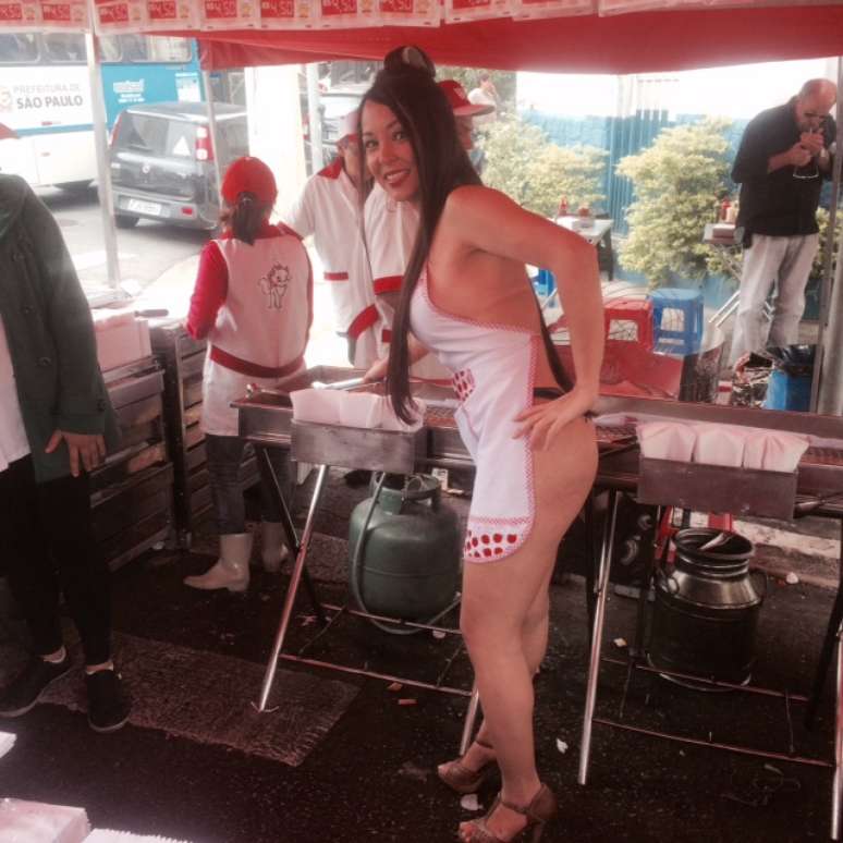Suzy Pianista apareceu em feira livre só com calcinha do Corinthians e avental
