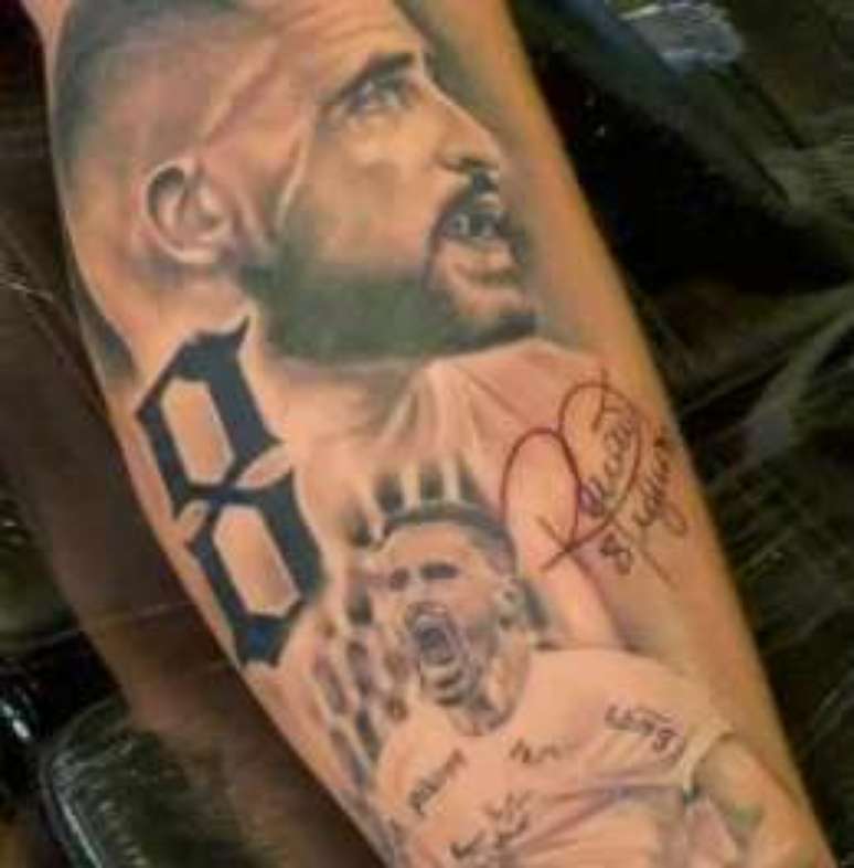 O meio-campista Renato Augusto, uma das referências atuais do elenco do Corinthians, foi homenageado de forma inusitada pelo corintiano Rafael Veiga. O torcedor fez uma tatuagem do camisa 8 na região da perna e chamou a atenção do ídolo da Fiel.