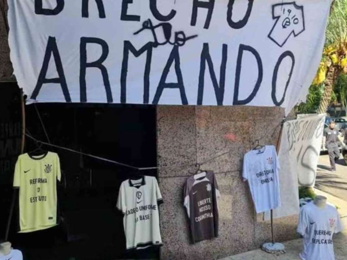Três torcedores do Corinthians realizaram um protesto nesta quarta-feira (26), na frente da sede do Parque São Jorge, contra os desvios de materiais da Nike. O trio levou camisas do clube, com frases de protesto, e uma faixa escrita "Brechó do Armando", em alusão ao vice-presidente do Timão, Armando Mendonça, apontado como responsável pelo escândalo.